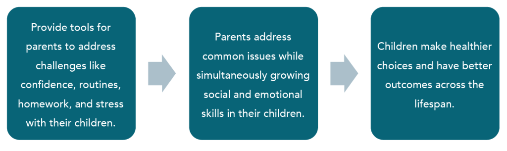 Research supports growing skills around self-awareness, self-management, social awareness, relationships, and the ability to make responsible decisions of parents improves the mental emotional, and behavioral development of children. This connection between parent and child makes this strategy a two-generation approach.